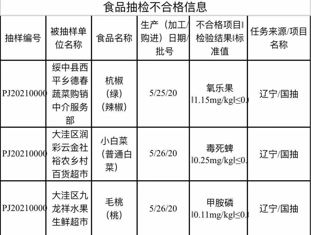 抽检信息丨辽宁省市场监督管理局关于食品安全抽检信息的通告